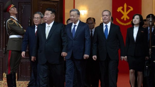 North Korean leader Kim Jong Un displayed a new long-range intercontinental ballistic missile at a military parade in Pyongyang that included foreign leaders on...